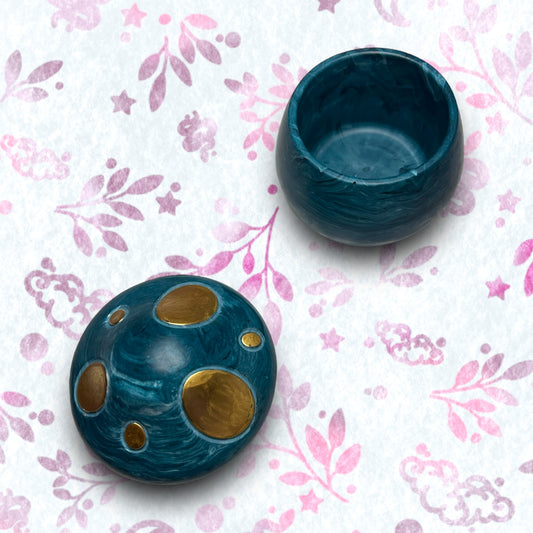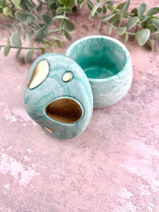 Mushroom Jar - Teal With Gold Detail Trinket Box