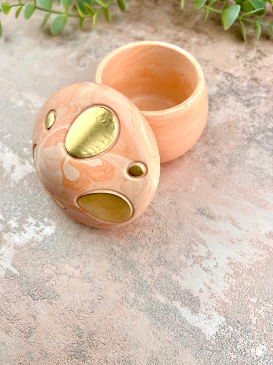 Mushroom Jar - Orange With Gold Detail Trinket Box