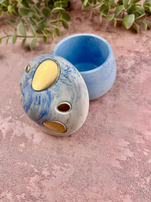 Mushroom Jar - Blue With Gold Detail Trinket Box