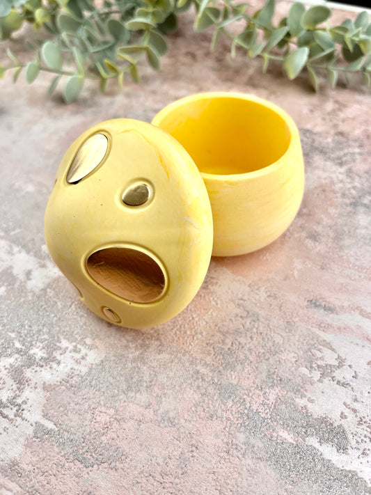 Mushroom Jar - Yellow With Gold Detail Trinket Box