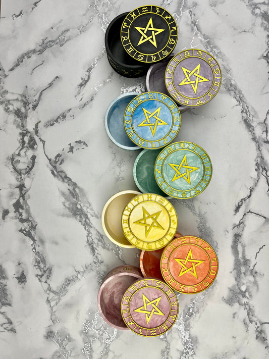Trinket Box - Yellow Sun and Horoscopes Detail