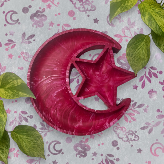Trinket Tray - Magenta Moon and Star Marble Style Ring Dish