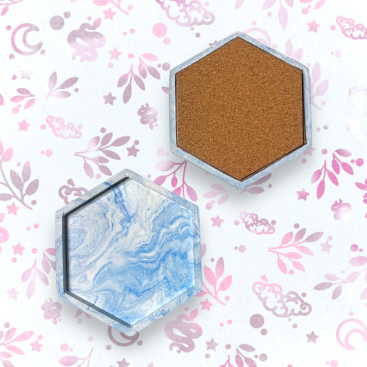 Drinks Coasters - Blue Hexagonal Marble Style Tray