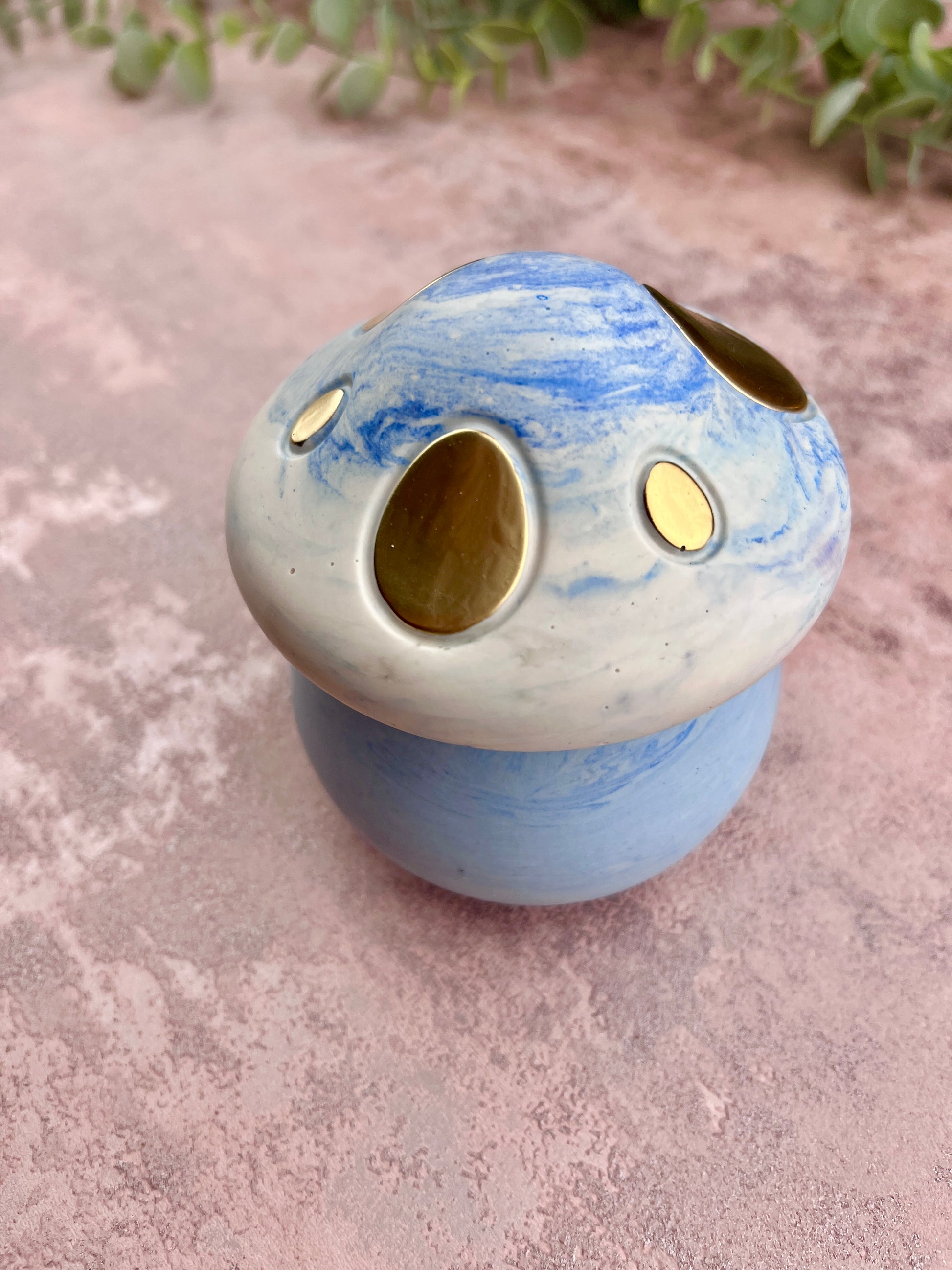 Mushroom Jar - Blue With Gold Detail Trinket Box