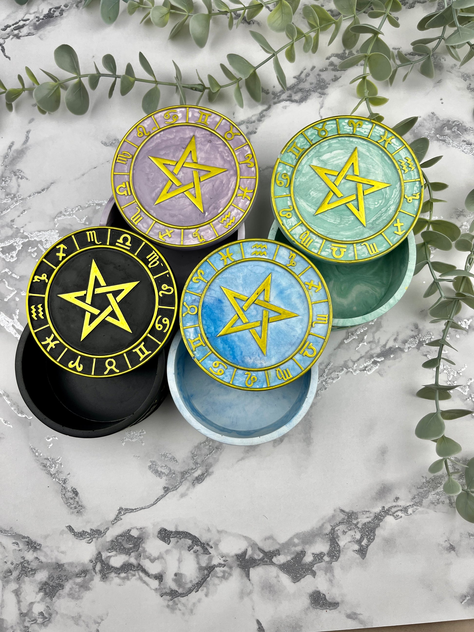 These astrology boxes are the perfect gift for people obsessed with the zodiac signs. Each box features all the star signs and either gold or silver hand painted details. These cute little trinket boxes are the perfect decor for your vanity to store your jewellery or your makeup sponges in to protect them from dust. They are also great for storing wax melts as the fragrance soaks into the Jesmonite. So each time your open your box you will be greeted with your favourite home fragrance scents.