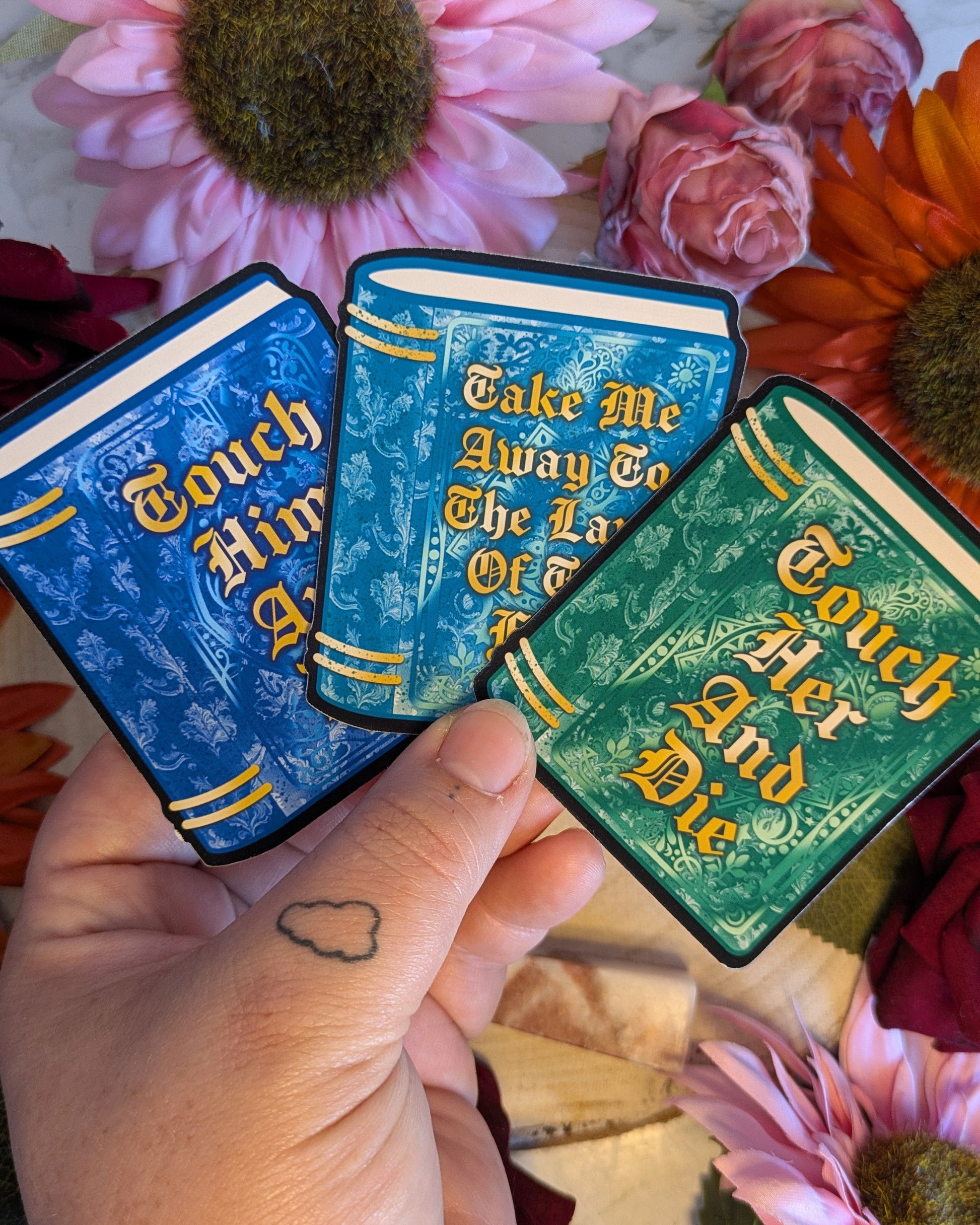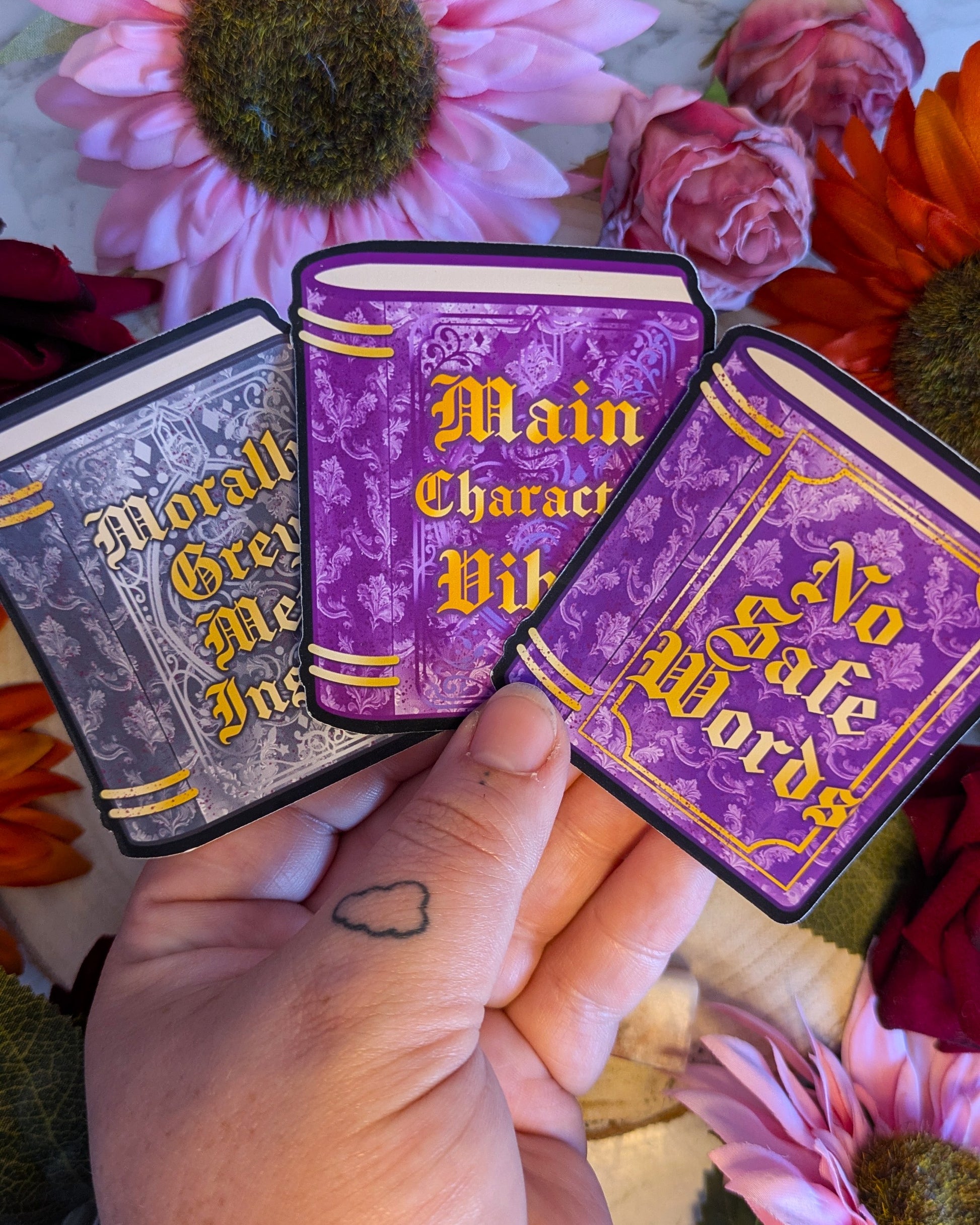 I designed these stickers as cute little funny quotes and tropes you can add into the back of your kindle case or stick anywhere you enjoy stickers.