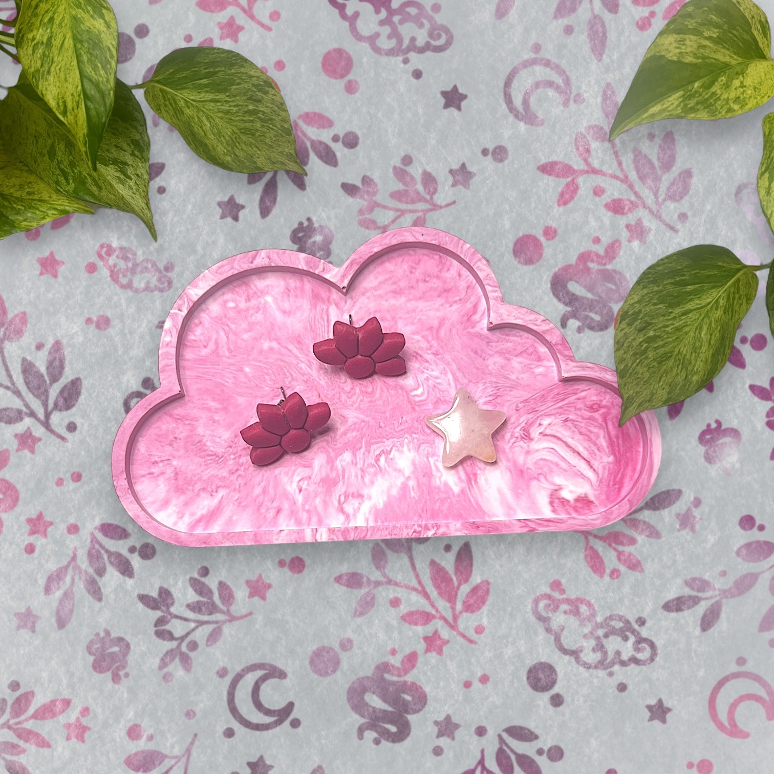Cloud Tray - Pink Marble Style Trinket Tray