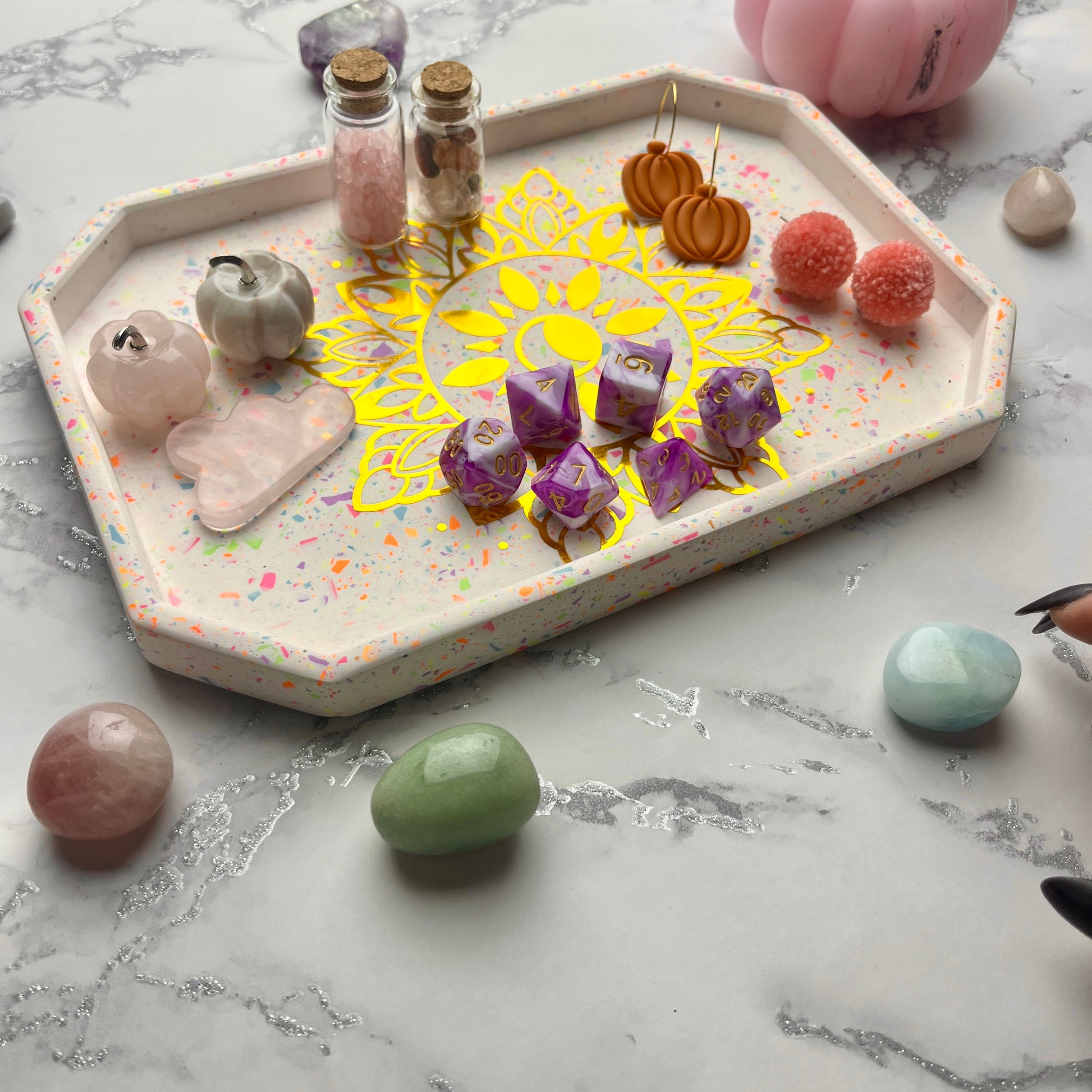These trays can also be used on your altar place to display tarot cards, charge your crystals under the full moon or display the crystals your would like to place your intentions on.