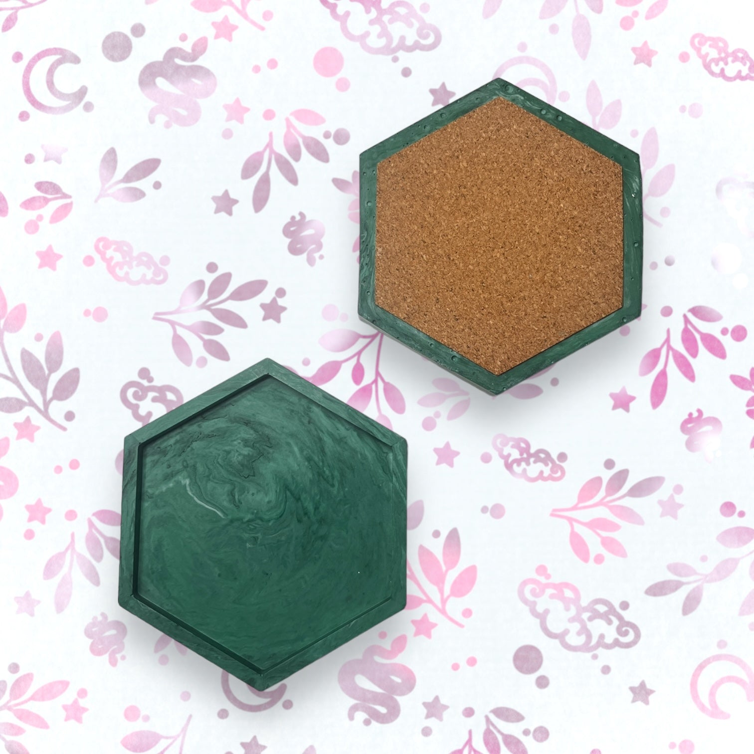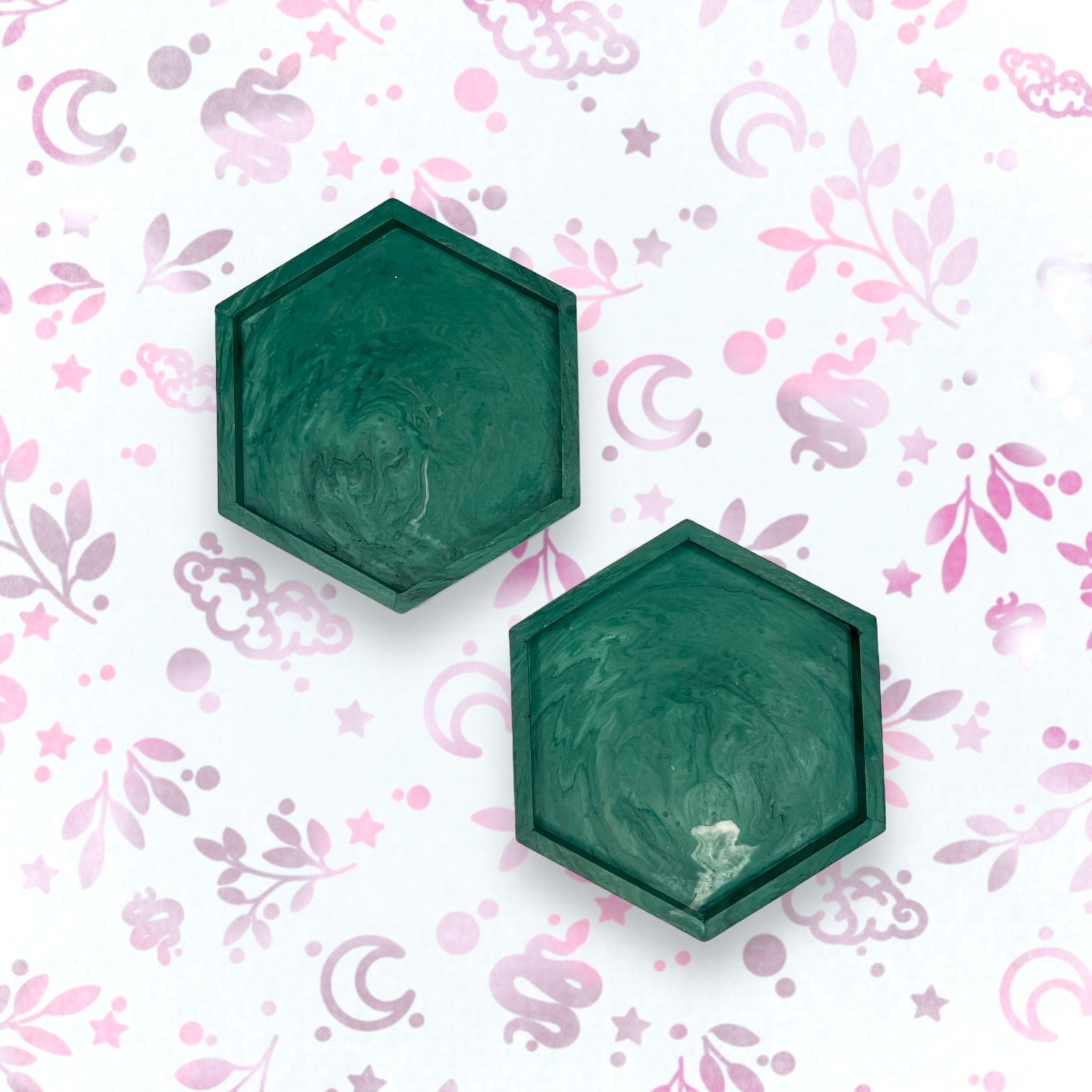 Drinks Coasters - Emerald Marble Style Hexagonal Tray