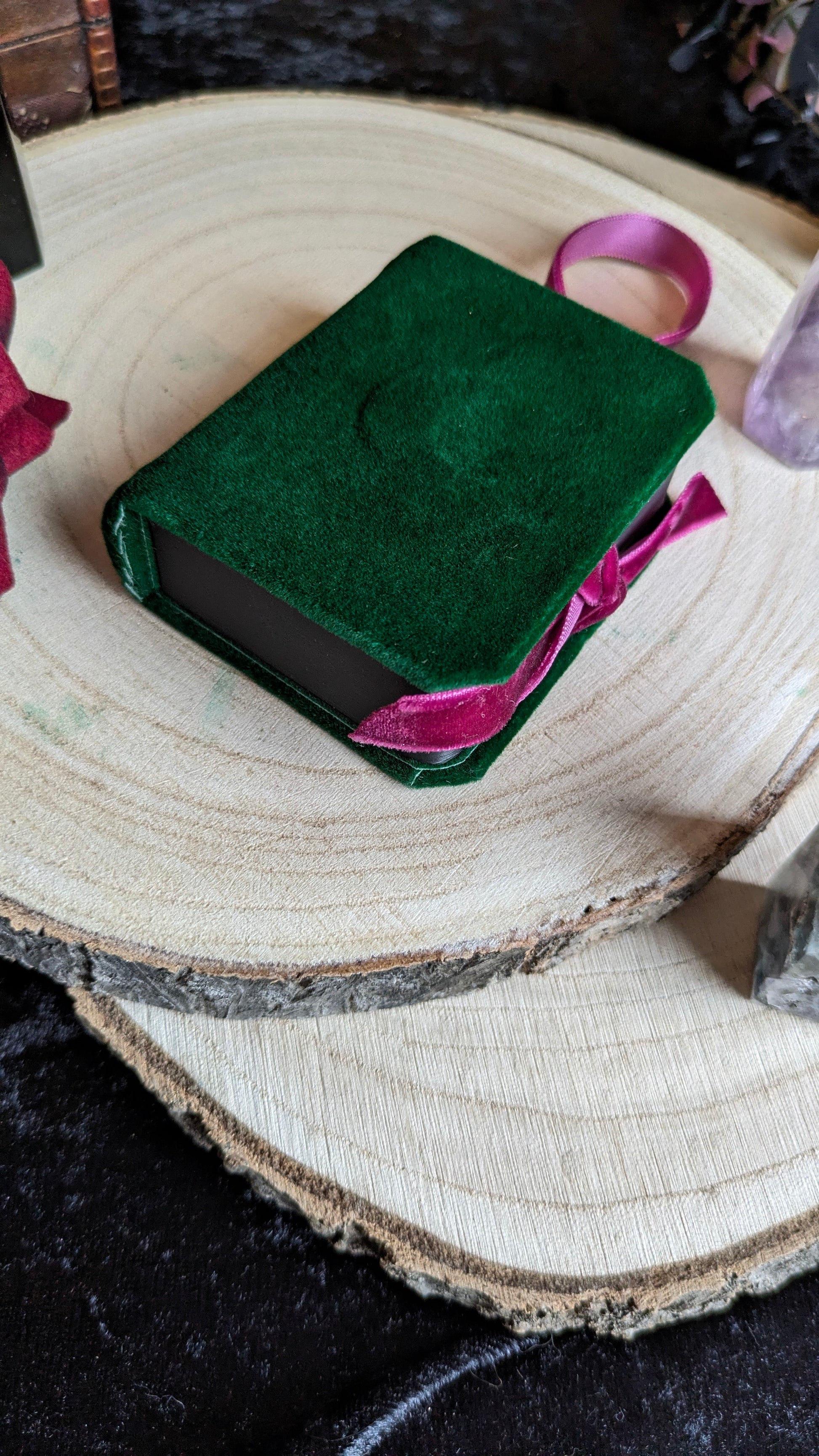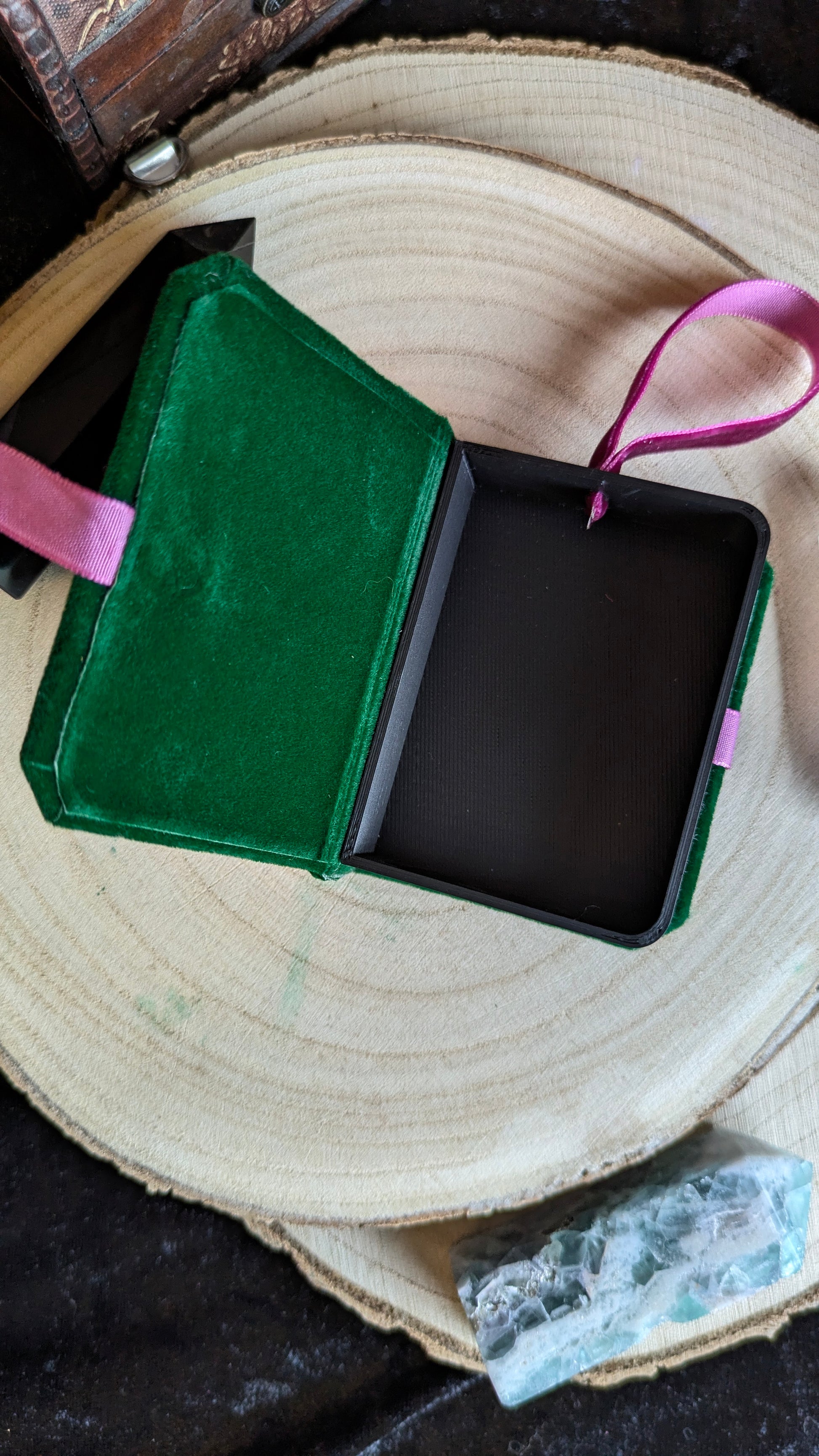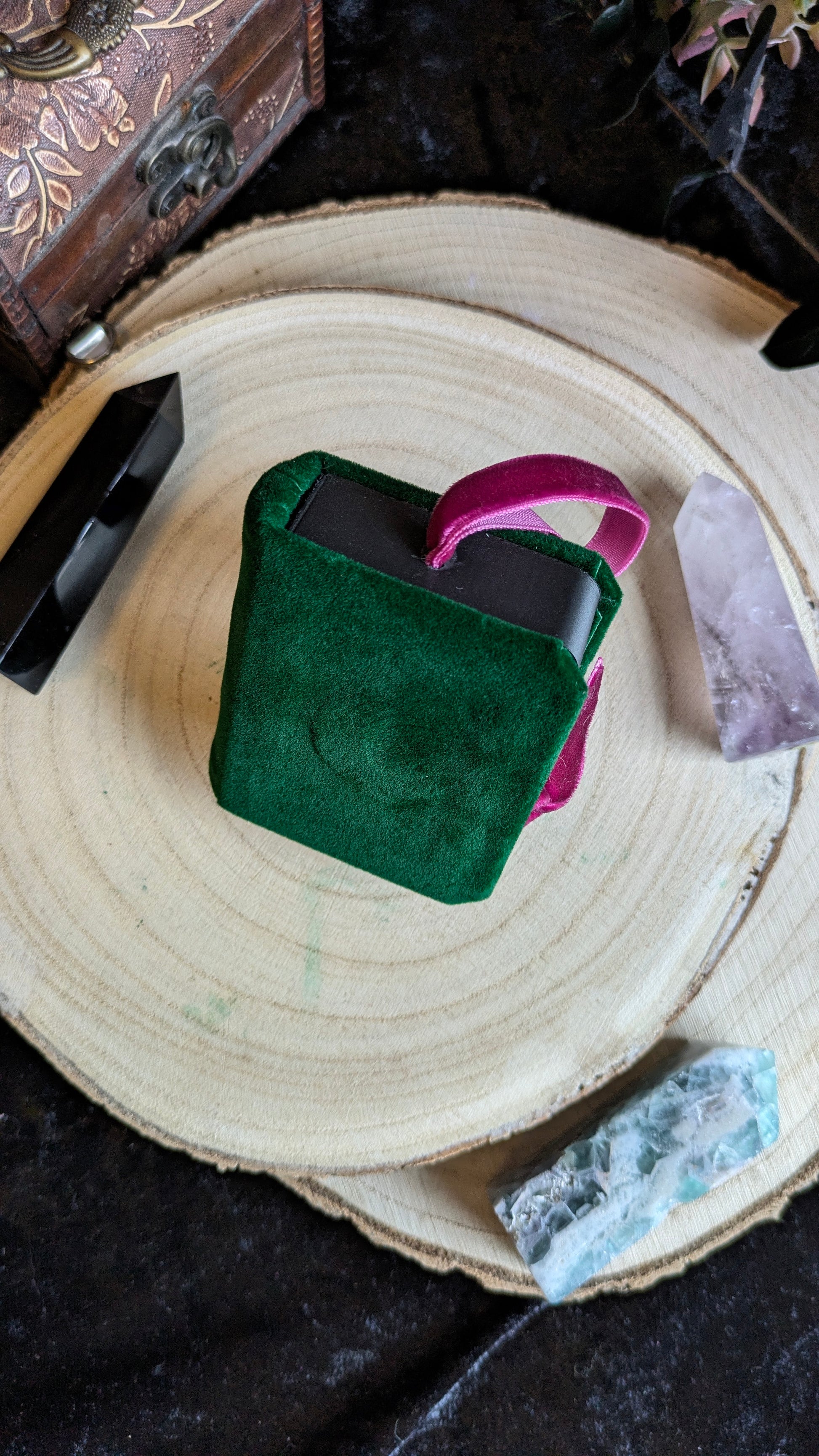 These are hand bound using the softest velvet with velvet ribbon to hang & tie closed, the middle is 3D modelled & printed to keep these little ornaments super lightweight.
