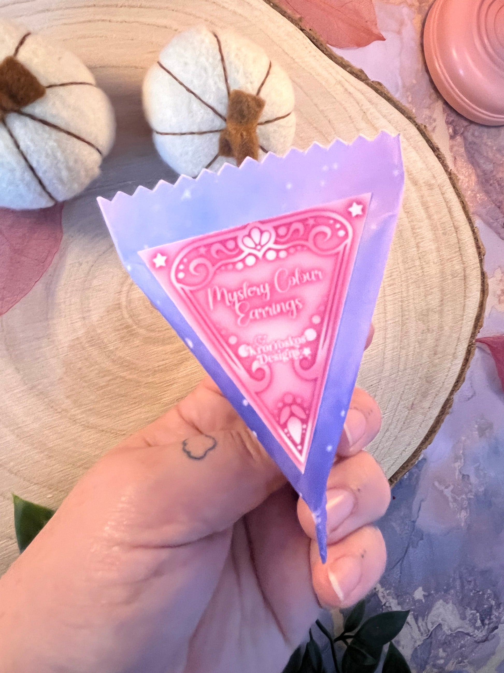 In these adorable little pouches you will get a mystery pair of our core collection of jewellery, you will know the shape but not the colour!