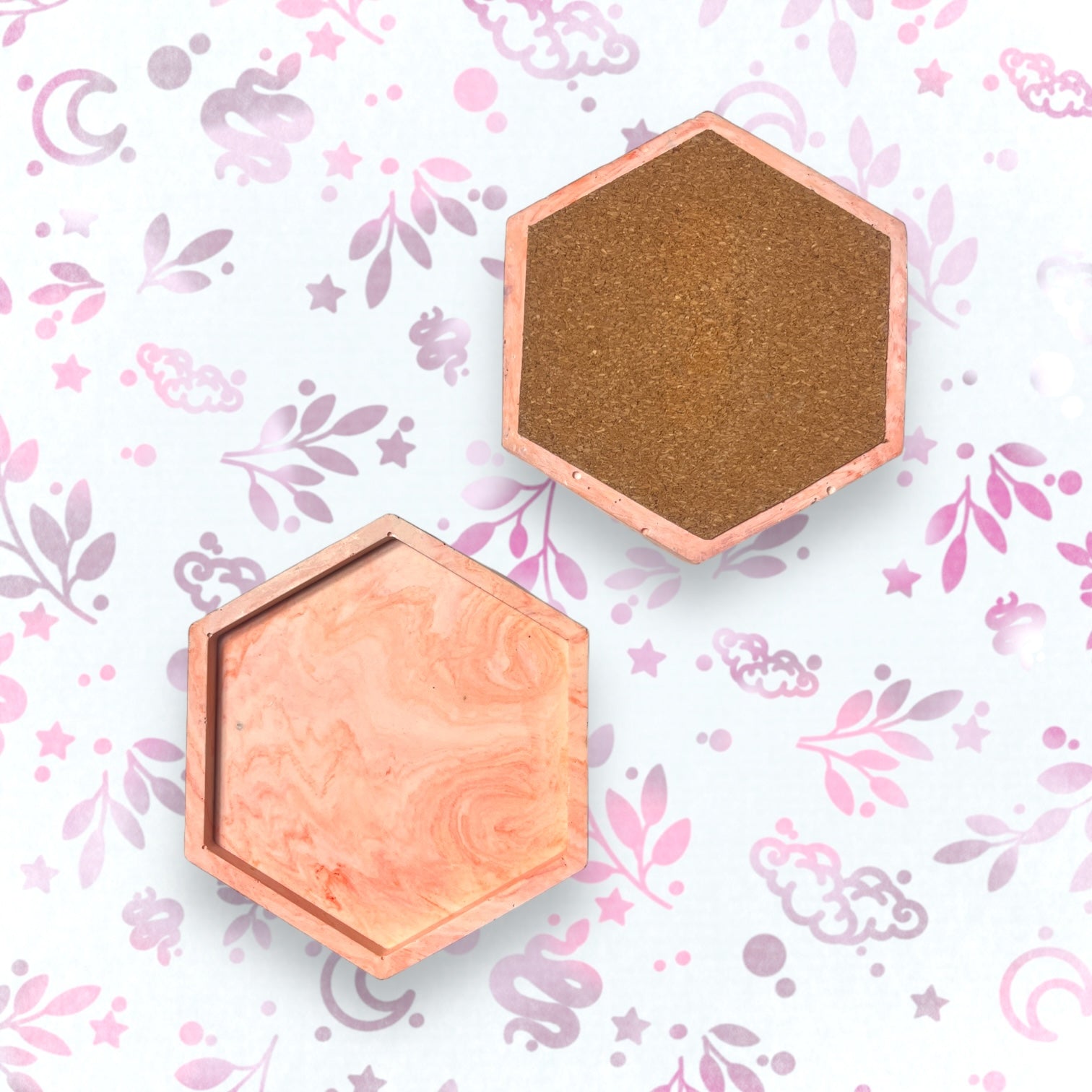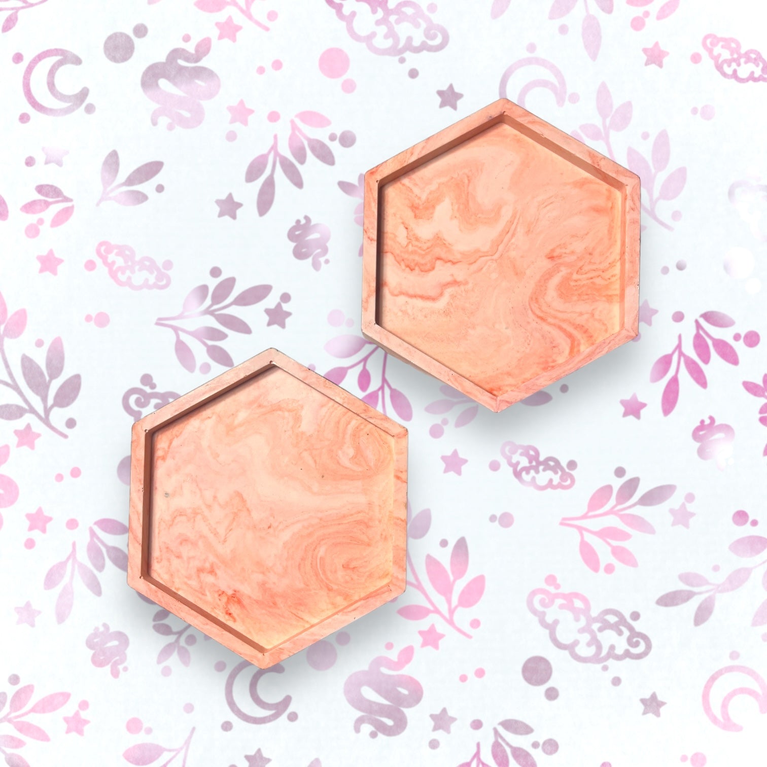 Drinks Coasters - Orange Marble Style Hexagonal Tray