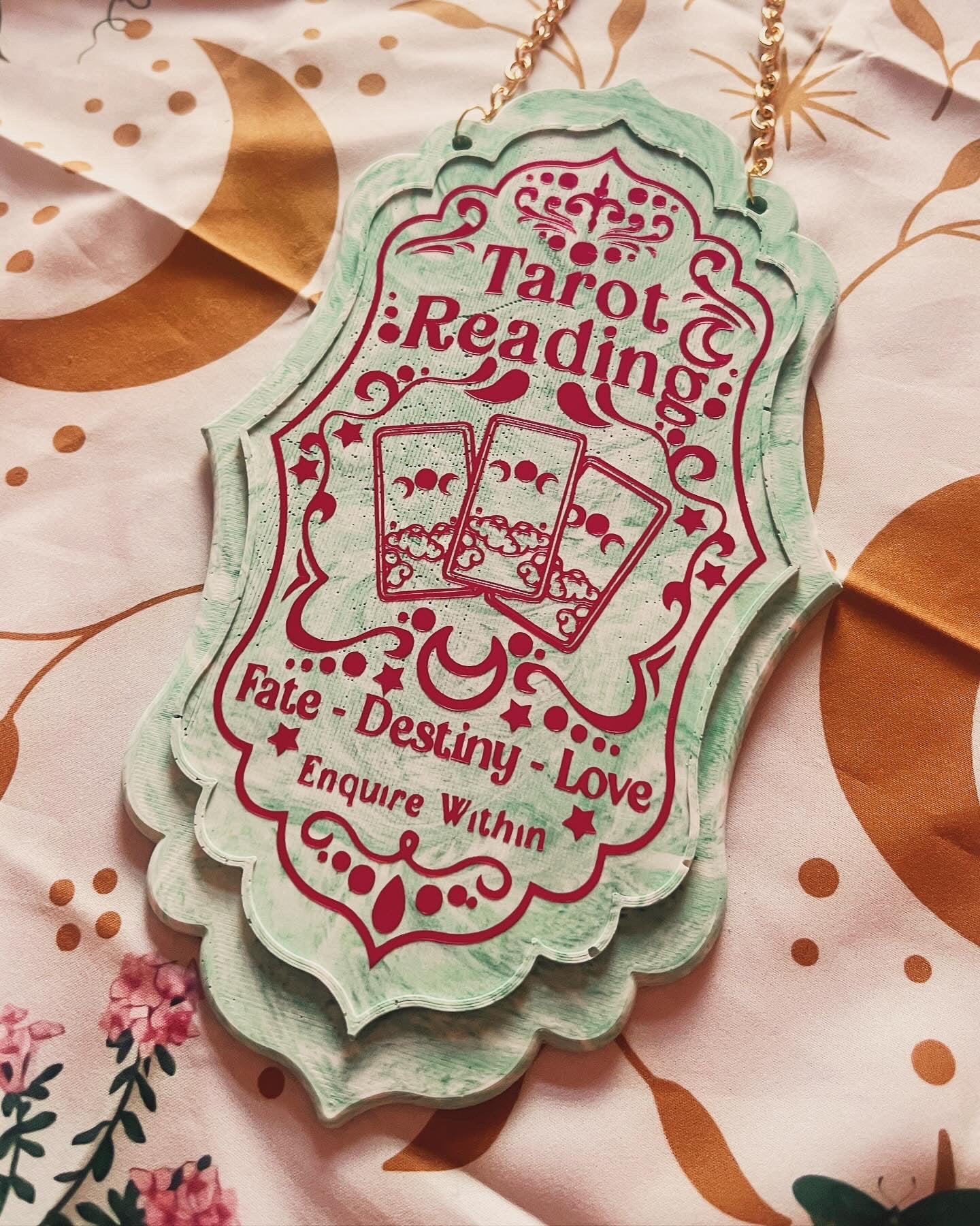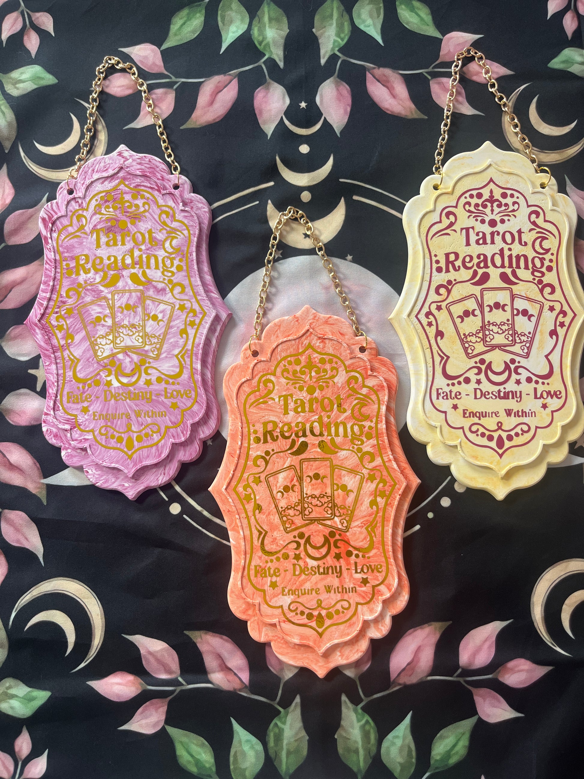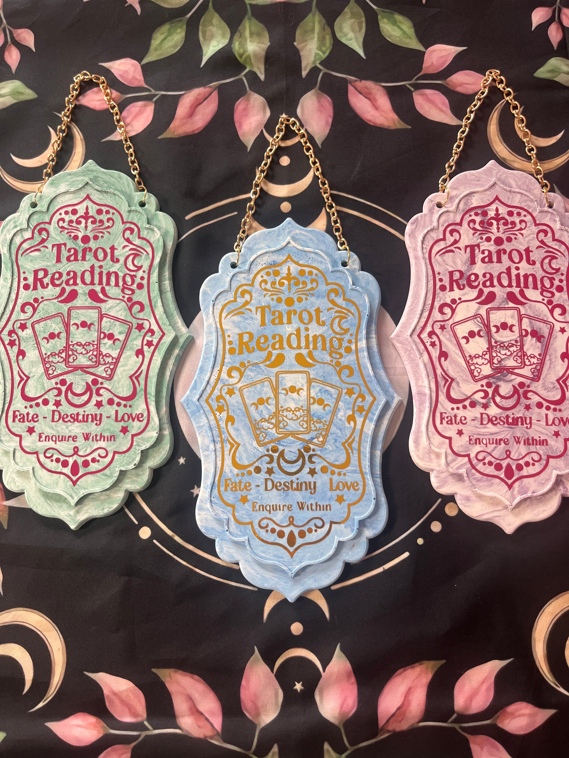 Master the art of divination with our Tarot Reader Design Wall Hanging. Made with a brass chain and adorned with a tarot reader sign, this unique piece will add a touch of mystique to your space. Embrace the themes of love, destiny, and fate, and elevate your home decor with this expertly crafted wall hanging.