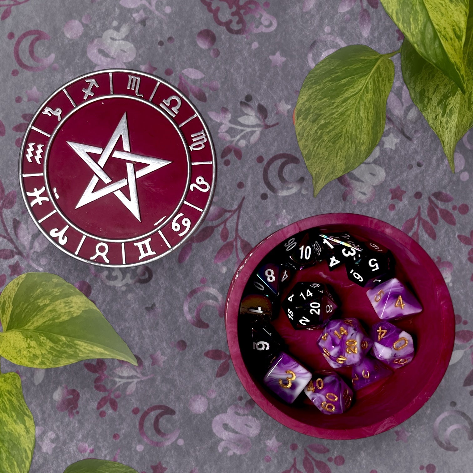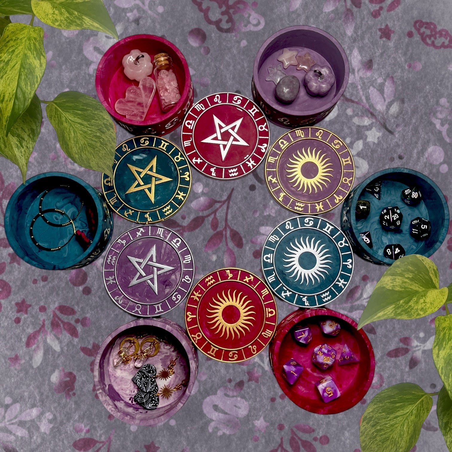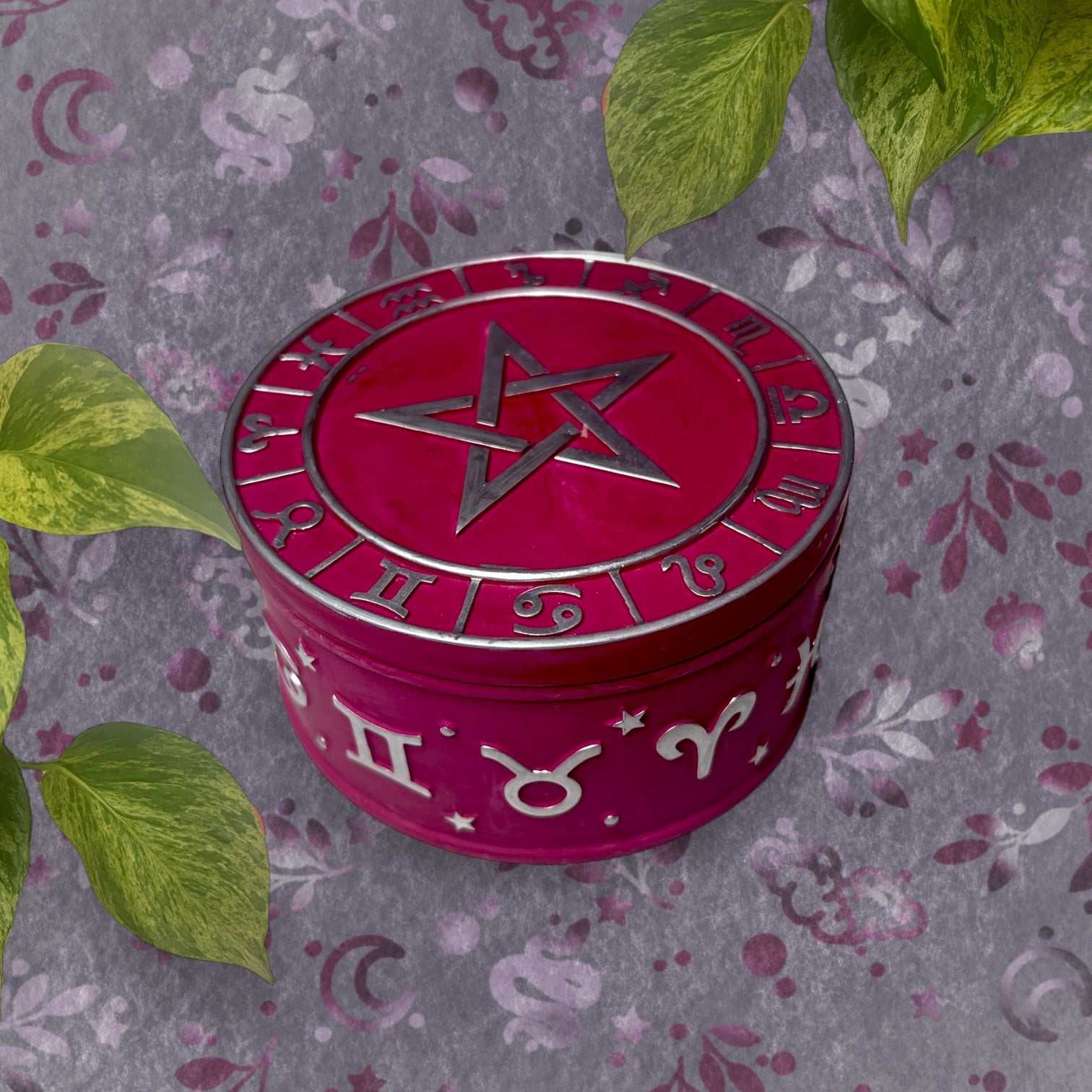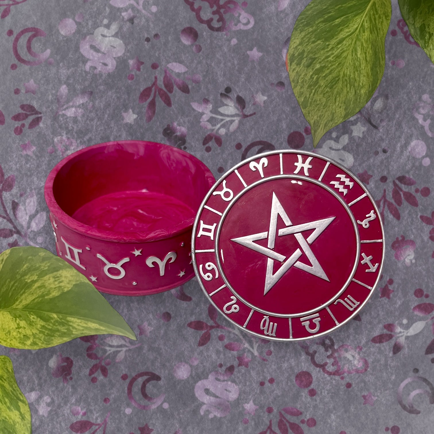 This intricately detailed trinket box is perfect for storing small items. Crafted from a durable and lightweight material, it features a star and horoscope detailing to add a touch of originality. With a unique and beautiful design, this trinket box is an excellent choice for jewelry storage.