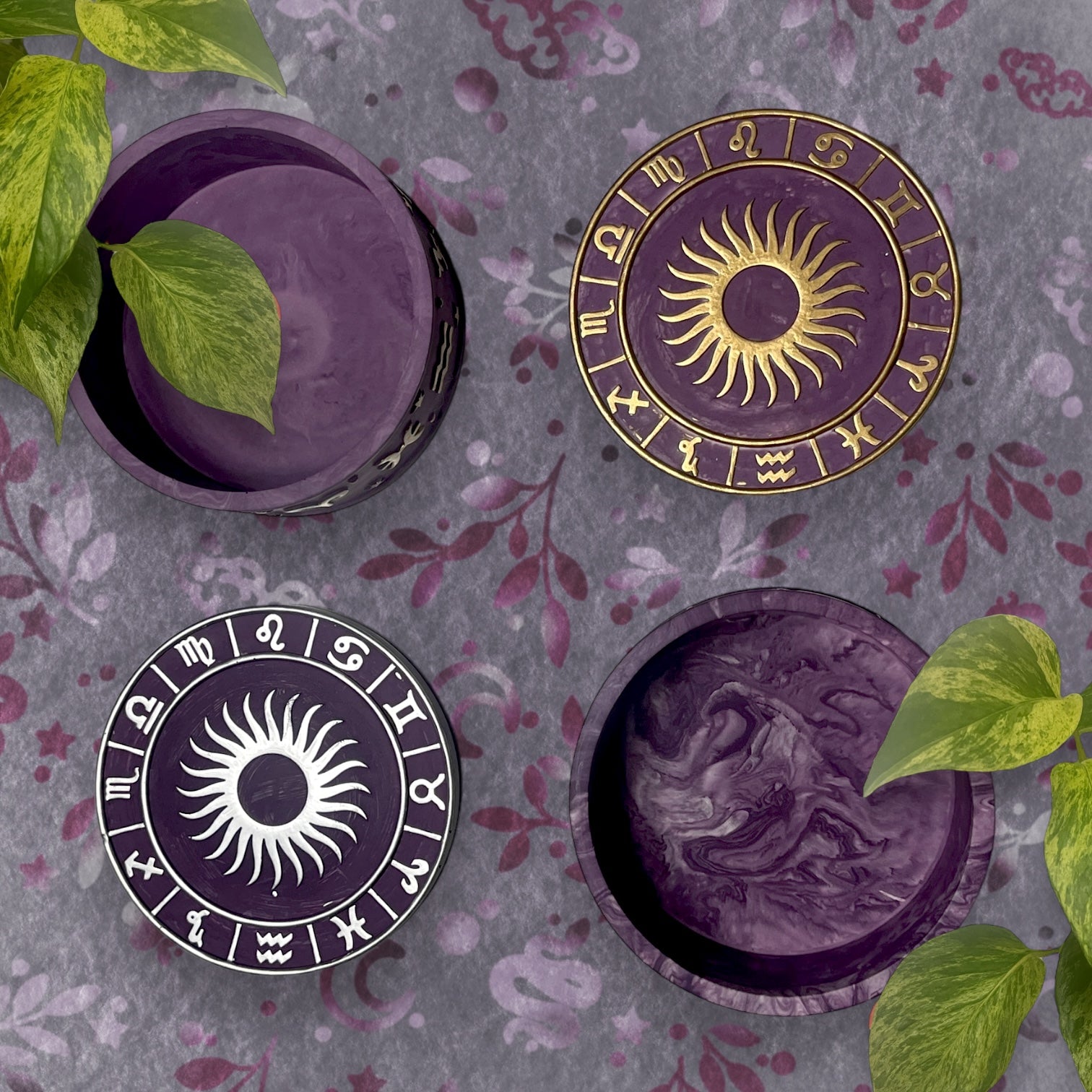 These astrology boxes are the perfect gift for people obsessed with the zodiac signs. Each box features all the star signs and either gold or silver hand painted details. These cute little trinket boxes are the perfect decor for your vanity to store your jewellery or your makeup sponges in to protect them from dust. They are also great for storing wax melts as the fragrance soaks into the Jesmonite. So each time your open your box you will be greeted with your favourite home fragrance scents.