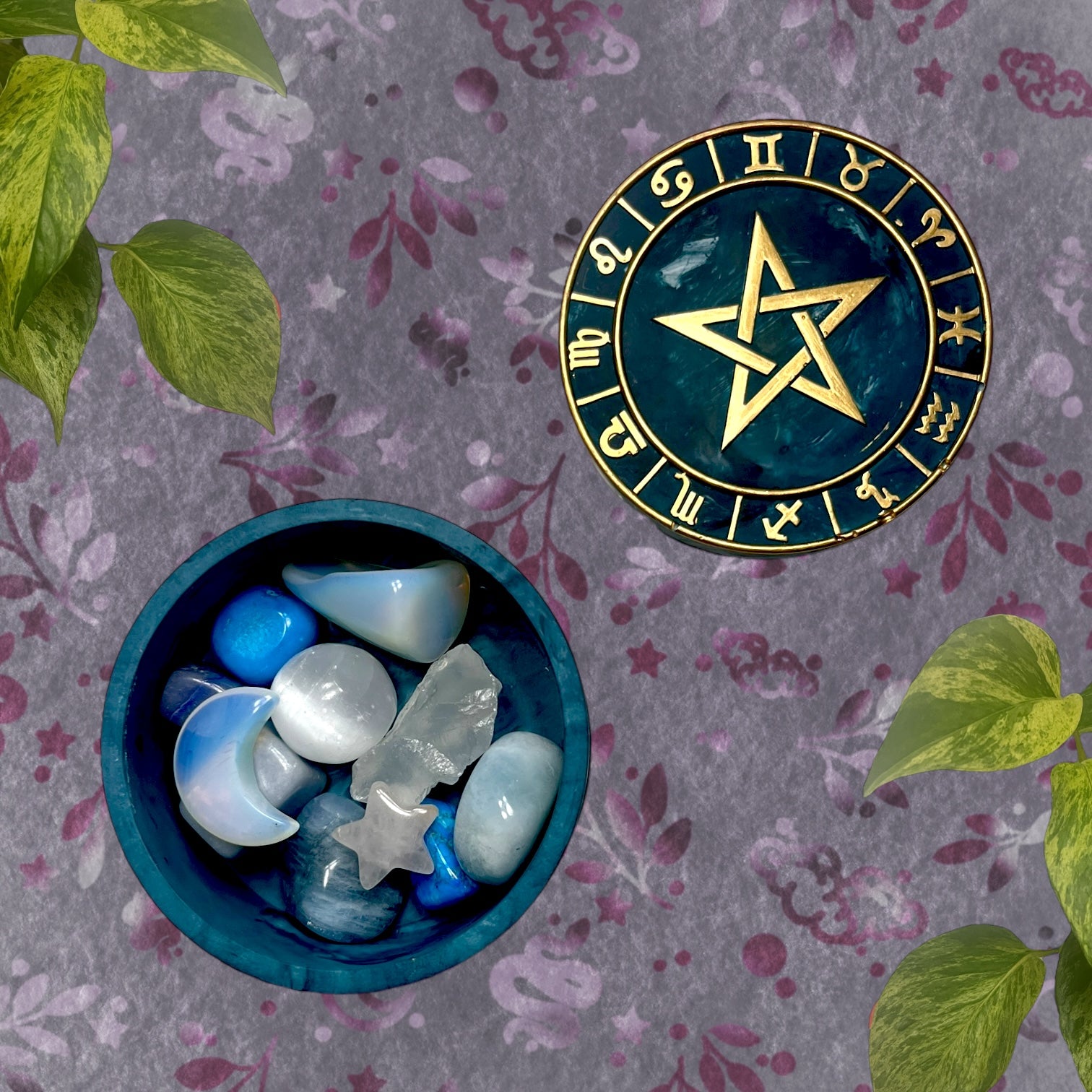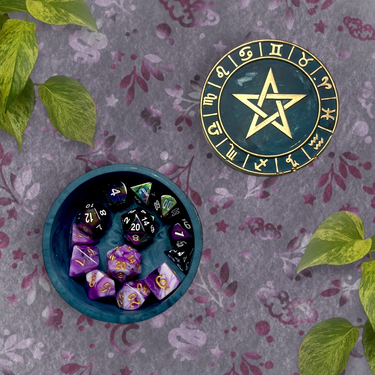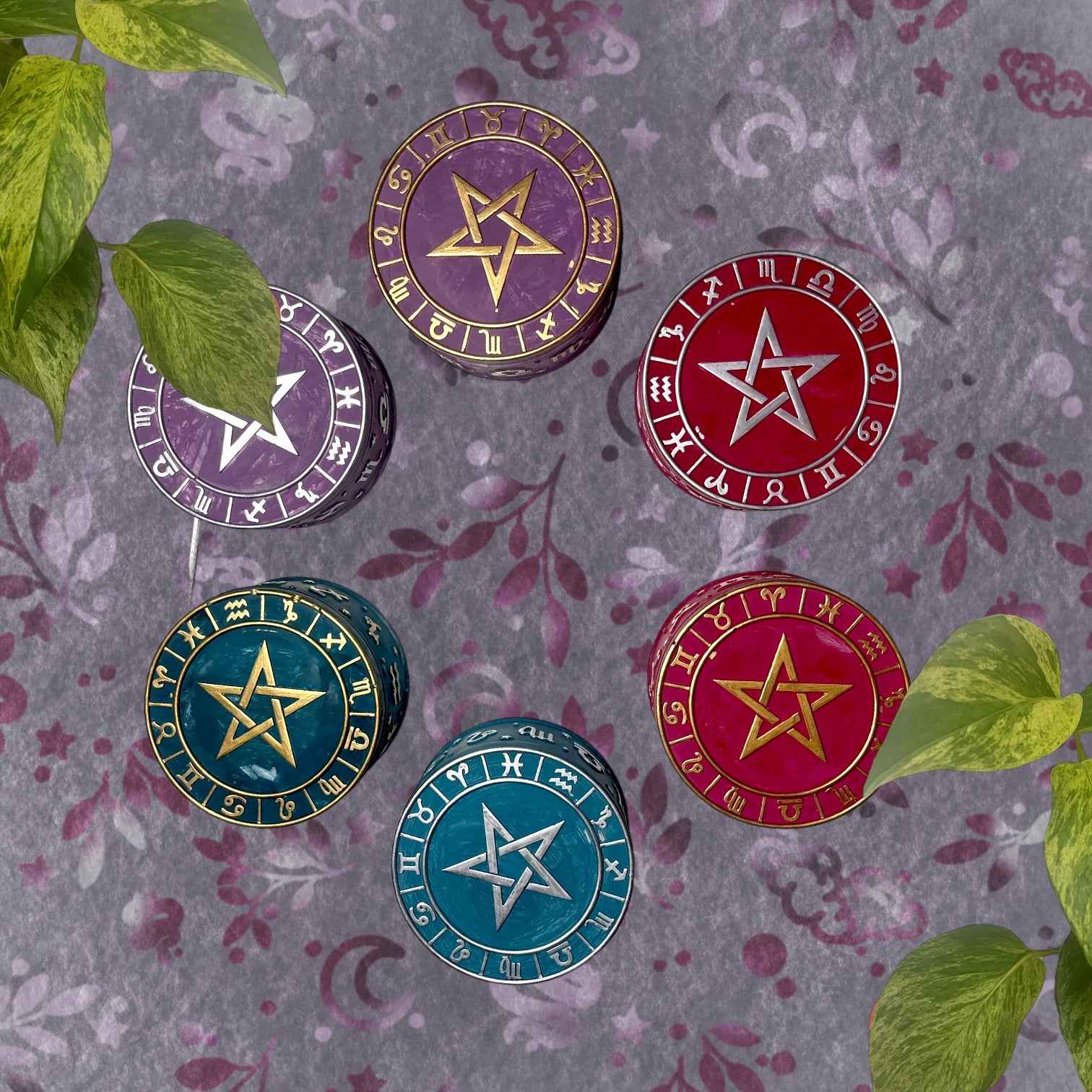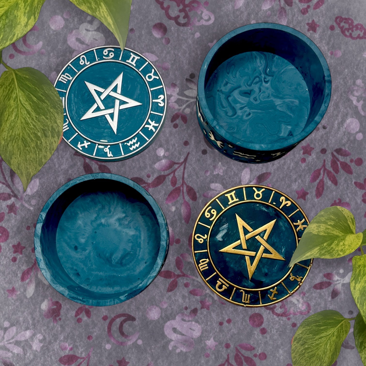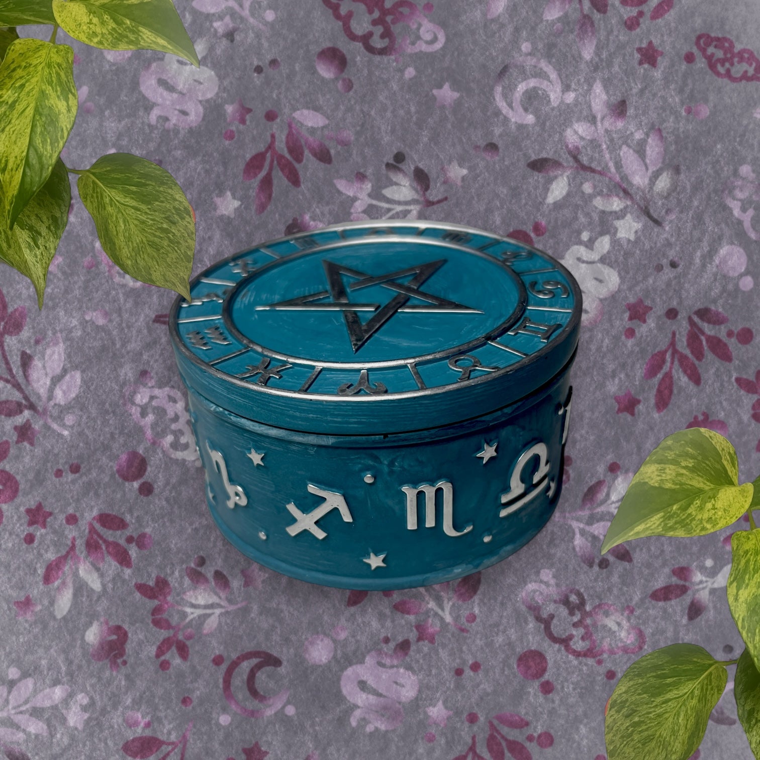 This intricately detailed trinket box is perfect for storing small items. Crafted from a durable and lightweight material, it features a star and horoscope detailing to add a touch of originality. With a unique and beautiful design, this trinket box is an excellent choice for jewelry storage.