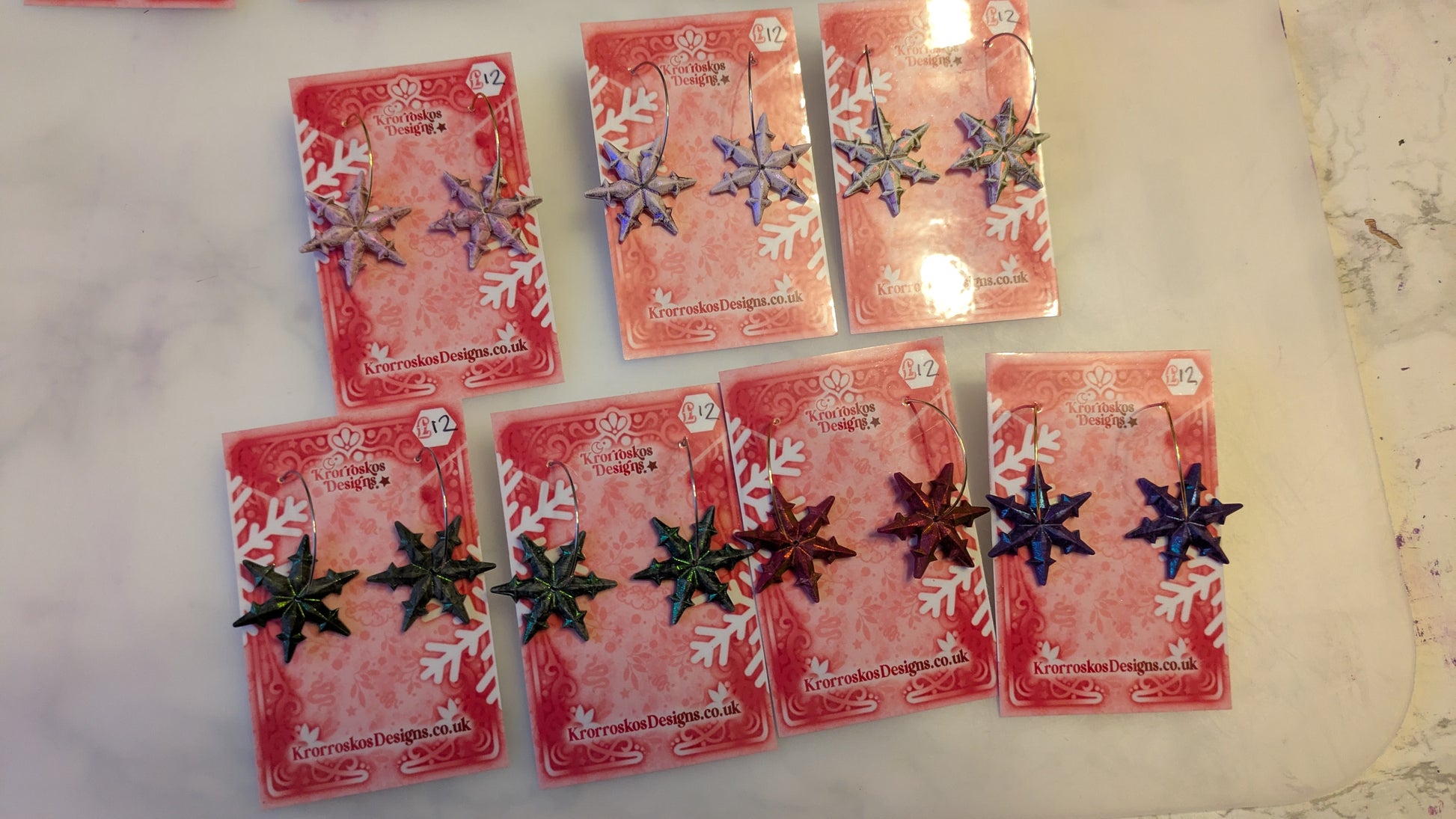 Our jesmonite jewellery is entirely handmade and may contain small air bubbles as this is the nature of the material. We pour everything using a marbling technique so there may be slight colour discrepancies between your screen and your jewellery.