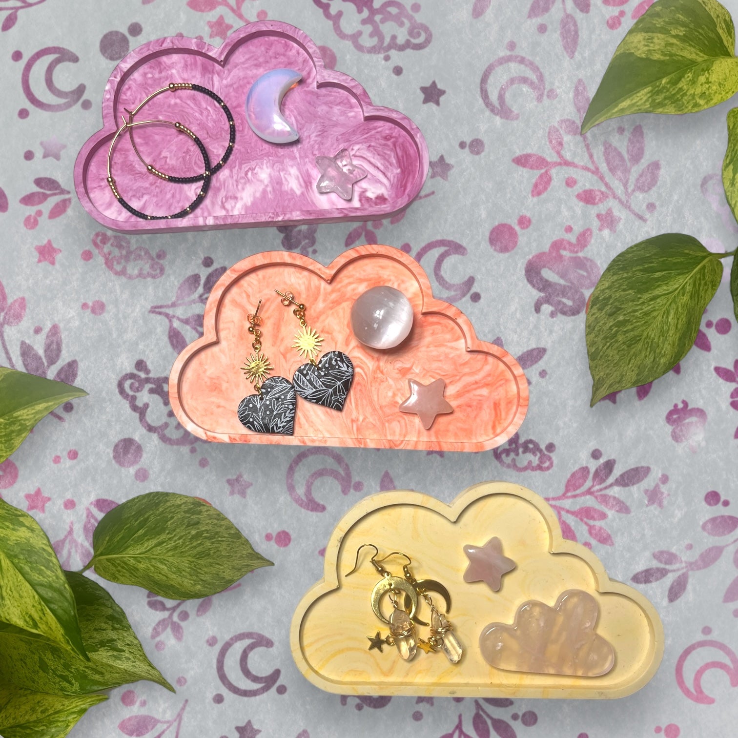 There's a reason these heavenly cloud trays are our bestseller, each handmade to order using Jesmonite, completely unique to you, they're the perfect catch-all for just about anything; Jewellery, watches, glasses, loose change, keys and even makeup.