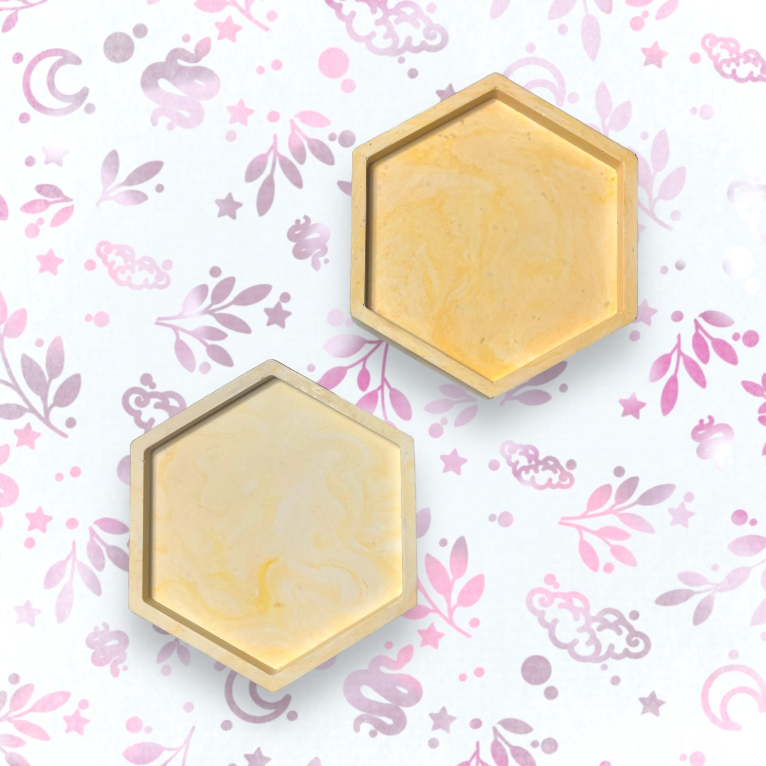 Drinks Coasters - Yellow Marble Style Hexagonal Tray