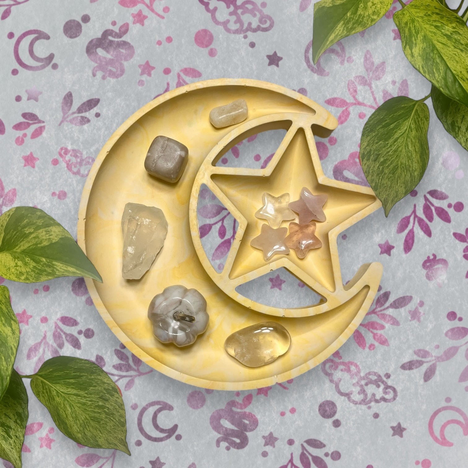 Trinket Tray - Yellow Moon and Star Marble Style Ring Dish