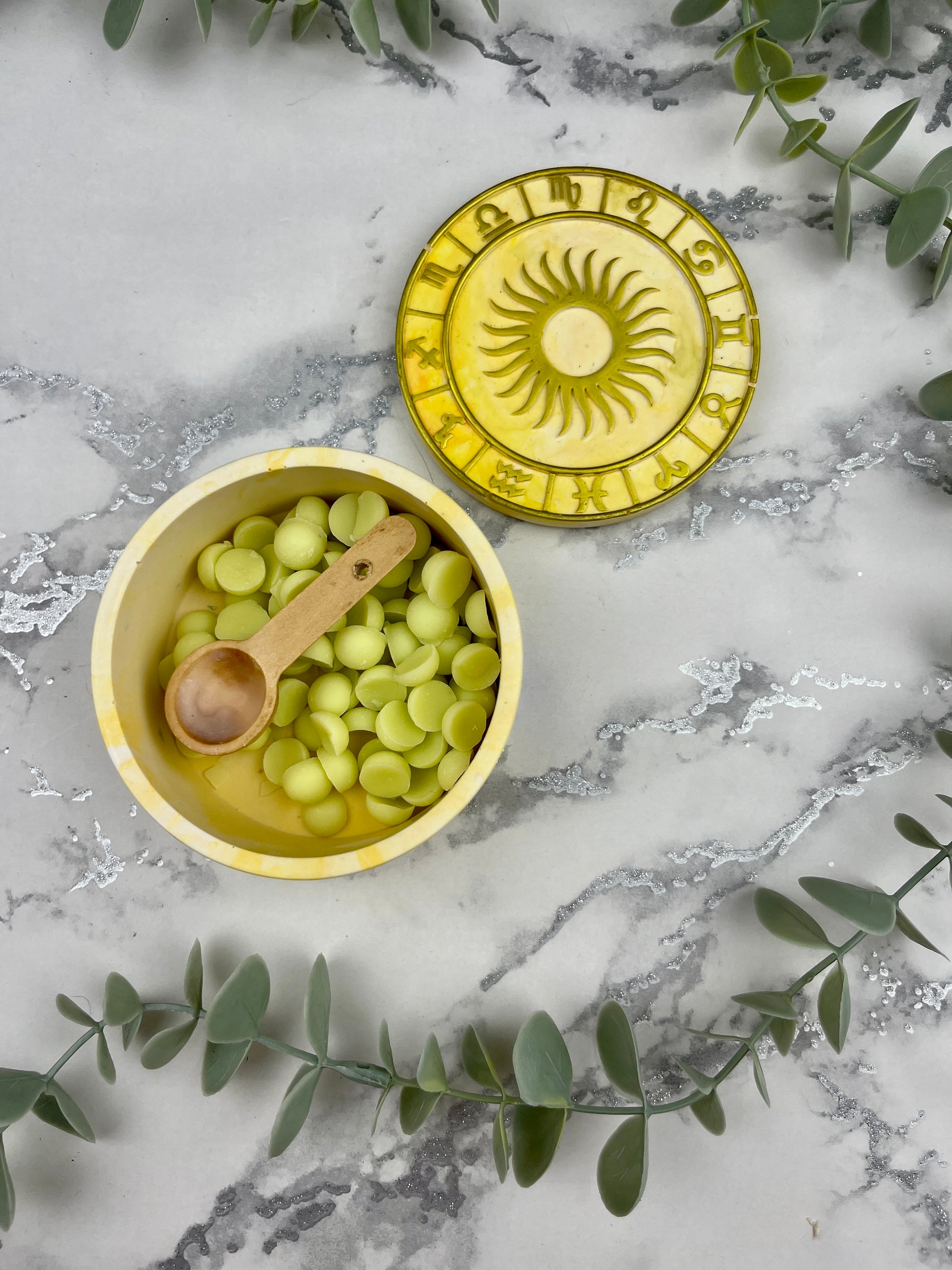 Trinket Box - Yellow Sun and Horoscopes Detail